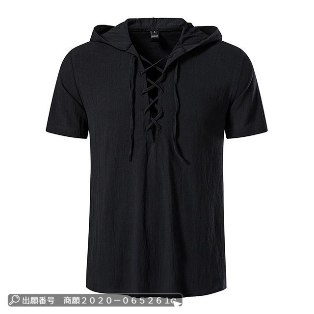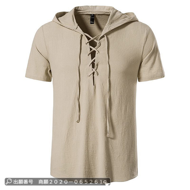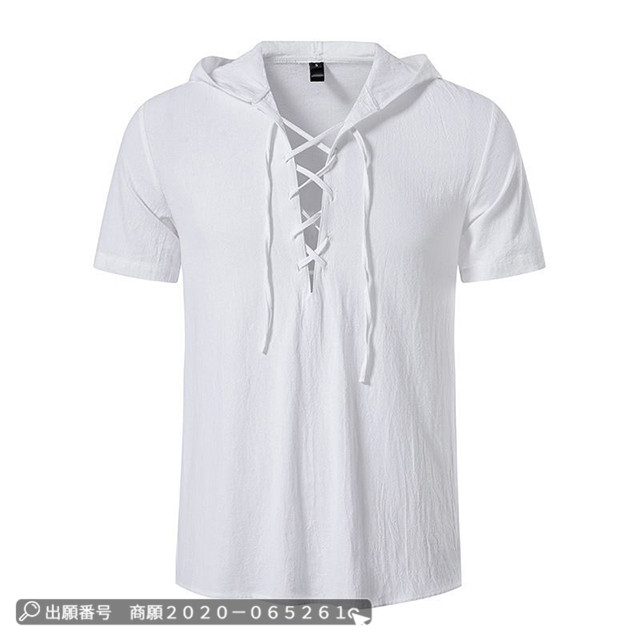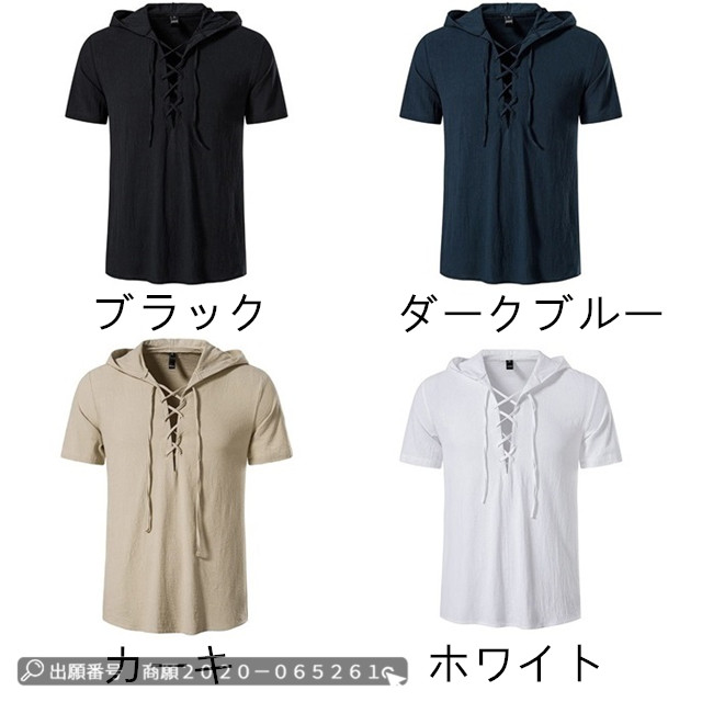 最安挑戦 冬新作 送料無料 新作 メンズ シャツ メンズトップス テザーフード付き 半袖Tシャツ 夏服 カジュアル ゆったり プルオーバー リネン Tシャツ Vネック オシャレ 無地 純色 ビーチヨガシャツ