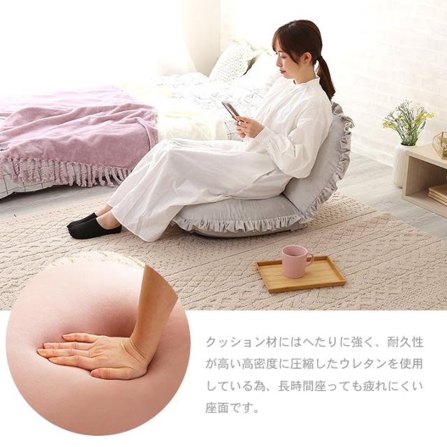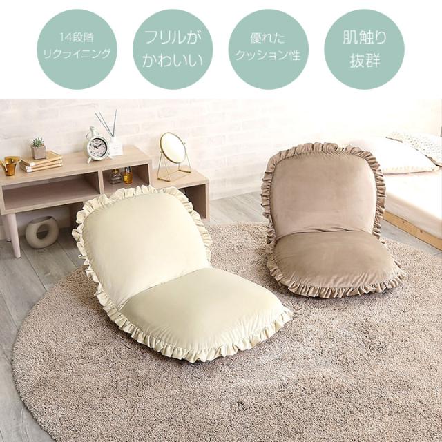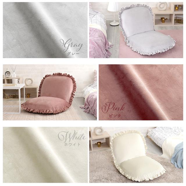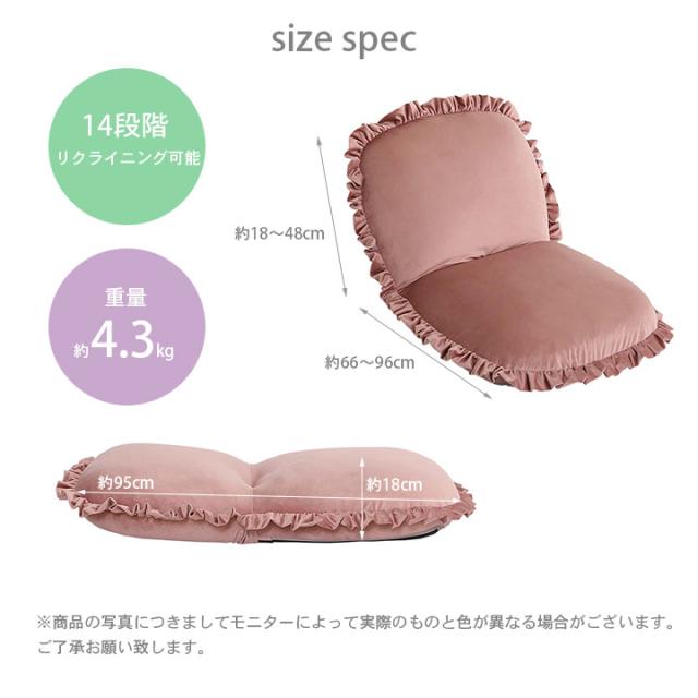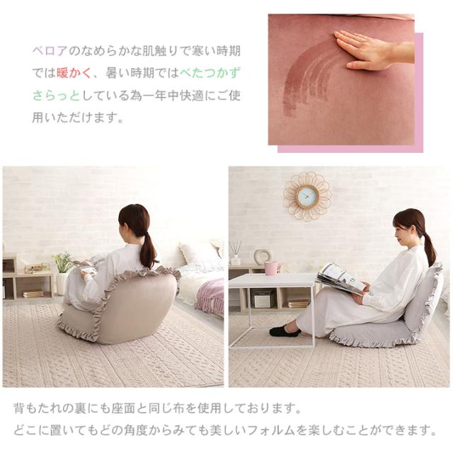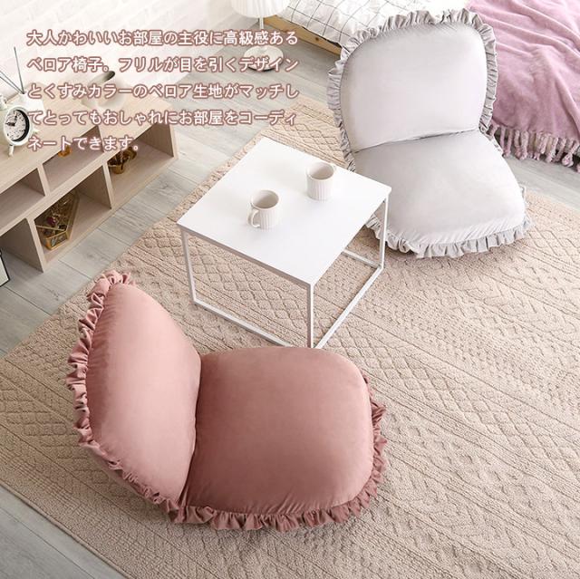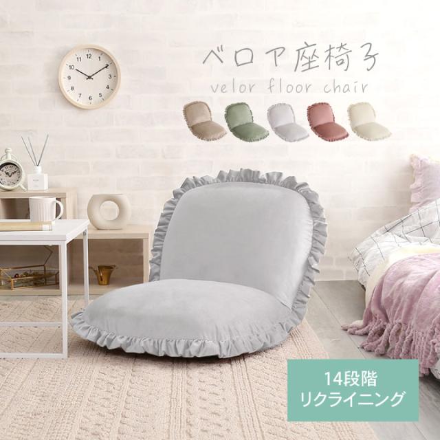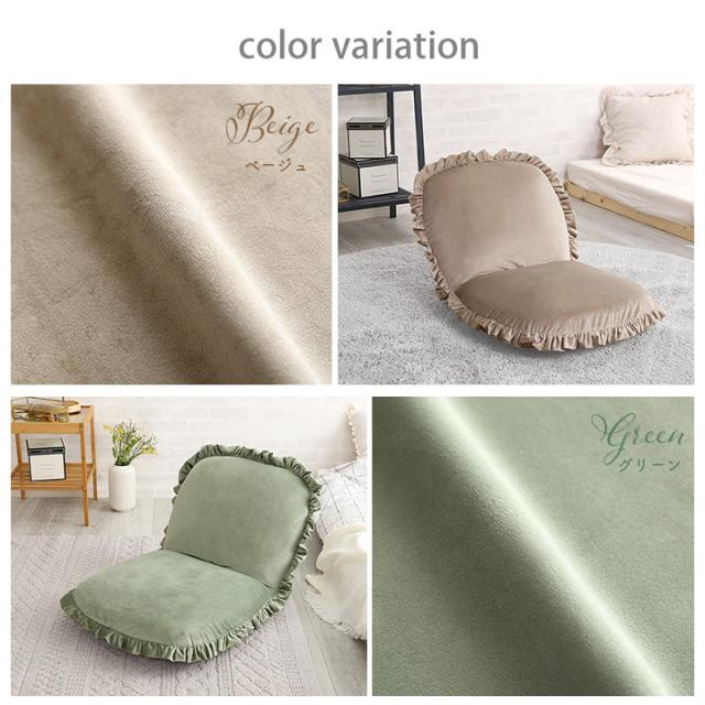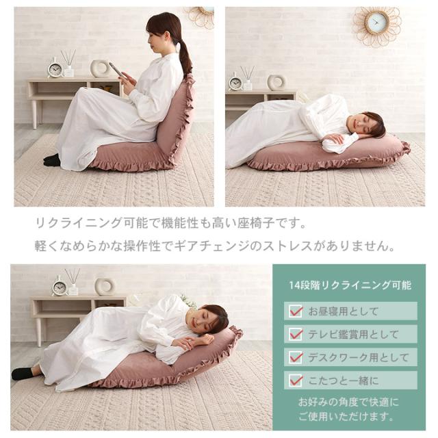 ベロア座椅子 リクライニング 14段階 座椅子 1人掛け フリル フリル付き おしゃれ かわいい ベロア くすみカラー コンパクト ゆったり Y504