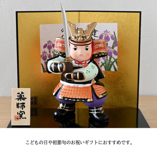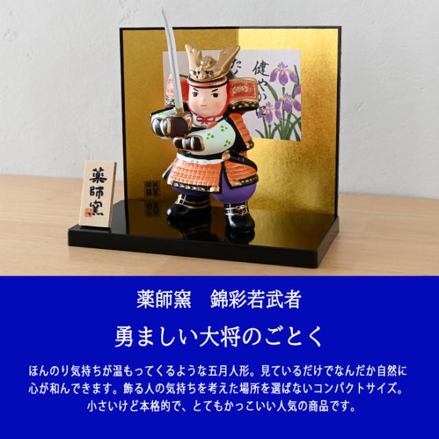 錦彩若武者(太刀) 5611 五月人形 薬師窯 コンパクト 玄関 陶器 兜 兜飾り おしゃれ 5月人形 モダン こどもの日 飾り 置物 子供の日 端午の節句 初節句 男の子 さつき人形 可愛い カワイイ こいのぼり 鯉のぼり マンション 縁起 出産祝 誕生日 プレゼント 和遊感