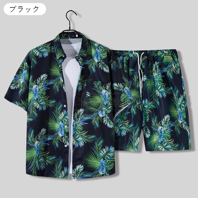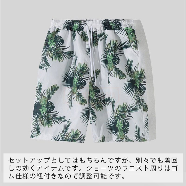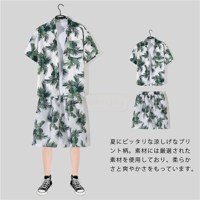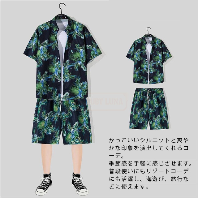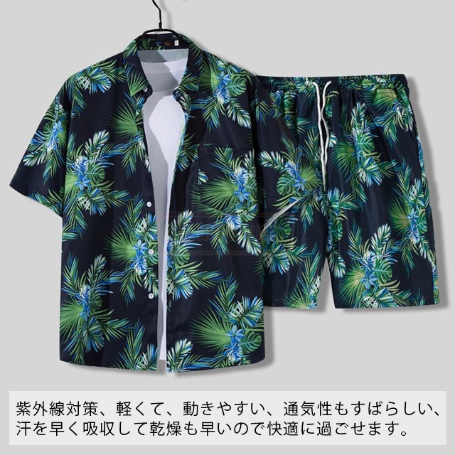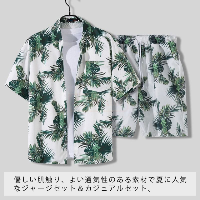最安挑戦 冬新作 送料無料 新作 セットアップ メンズ ジャージ ハワイ上下セット 夏 ひんやり 涼感 薄手 旅行 海 ビーチ カジュアル 半袖シャツ ハーフパンツ 2点セット スポーツウェア 花柄 葉柄 総柄 植物 軽量 夏服 夏物 アロハシャツ