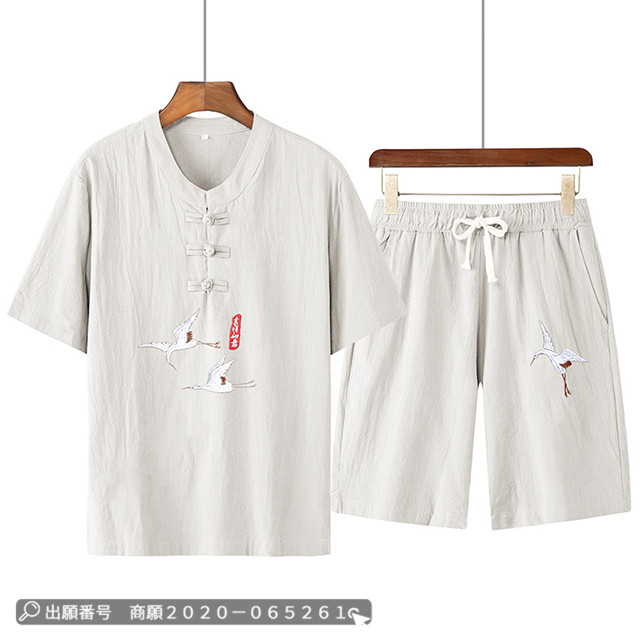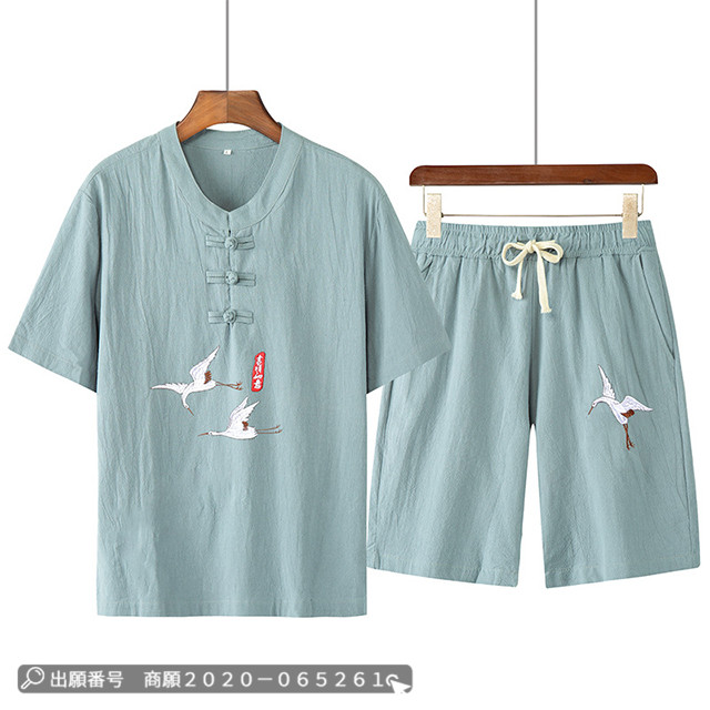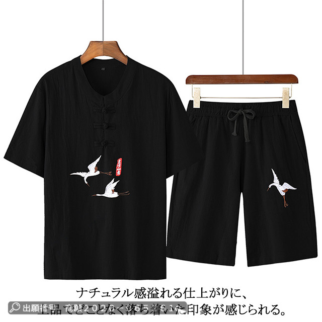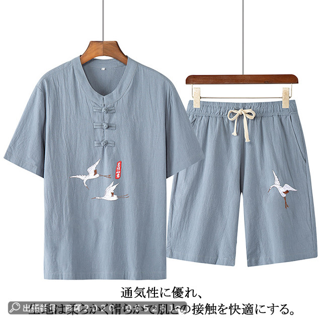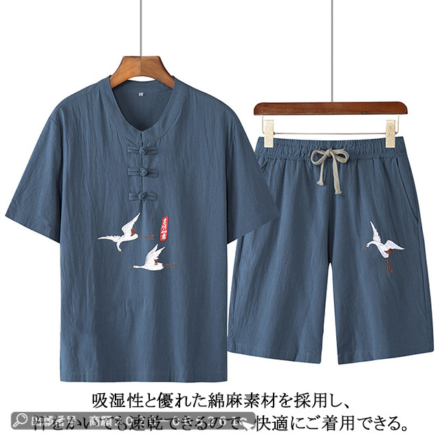 最安挑戦 冬新作 送料無料 新作 セットアップ メンズ 上下セット 夏 涼しい ジャージ 半袖 薄手 通気性 リネン 刺繍入り サマー 涼感 カジュアルセットアップ 2点セット 切り替え 男性 チャイニーズスタイル