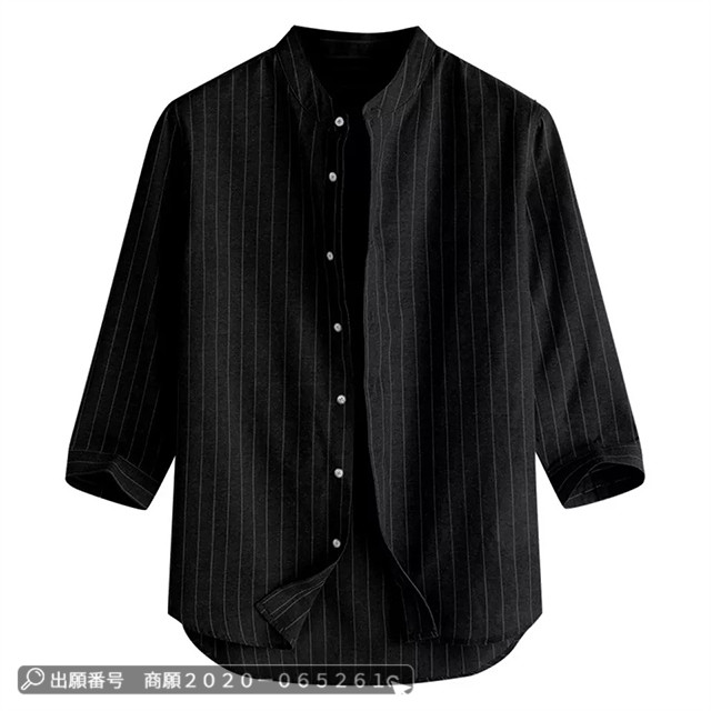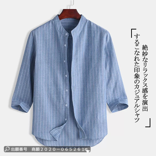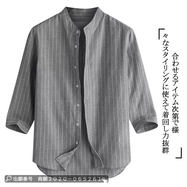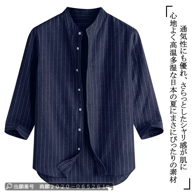 最安挑戦 春新作 送料無料 新作 メンズ シャツ 開襟シャツ ストライプシャツ メンズ リネンシャツ ゆったり スタンドカラー ワイシャツ トップスメンズ 七分袖シャツ 涼しい 夏 カジュアルシャツ 日系