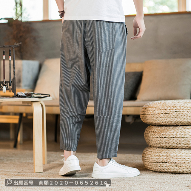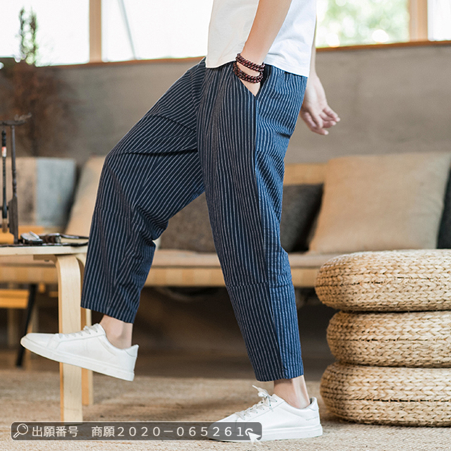 最安挑戦 冬新作 送料無料 新作 パンツ メンズ サルエルパンツ ストライプ柄 リネンパンツ 夏 涼しい ズボン ゆったり サマー ワイドパンツ 綿麻 大きいサイズ ブルマパンツ チノパン
