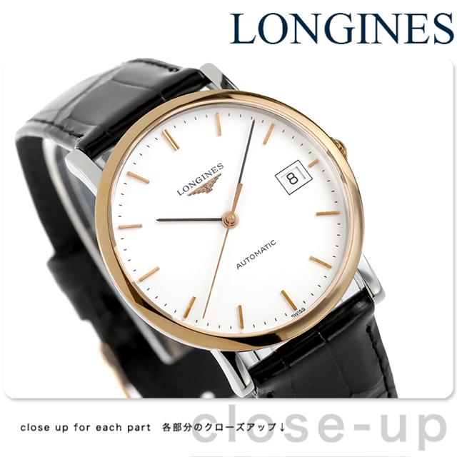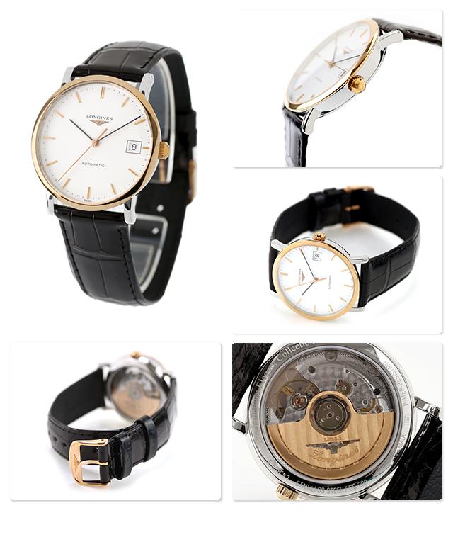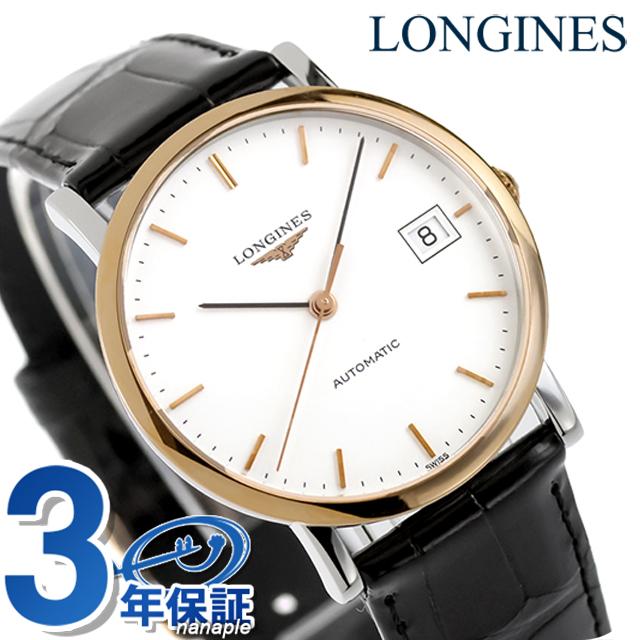 ロンジン エレガント 自動巻き 腕時計 ブランド メンズ LONGINES L4.809.5.12.0 アナログ ホワイト ブラック 黒 スイス製 おしゃれ 防水 プレゼント 男性 実用的