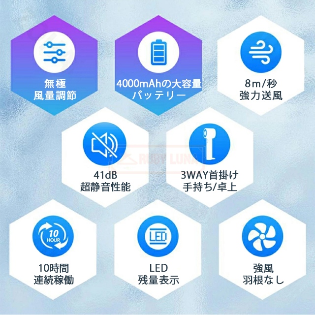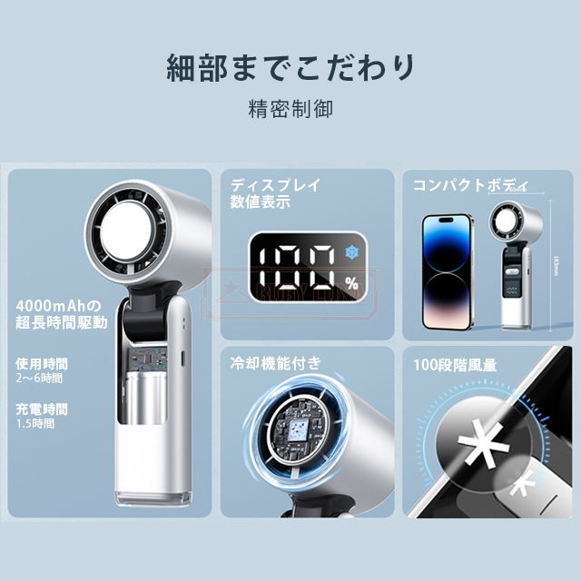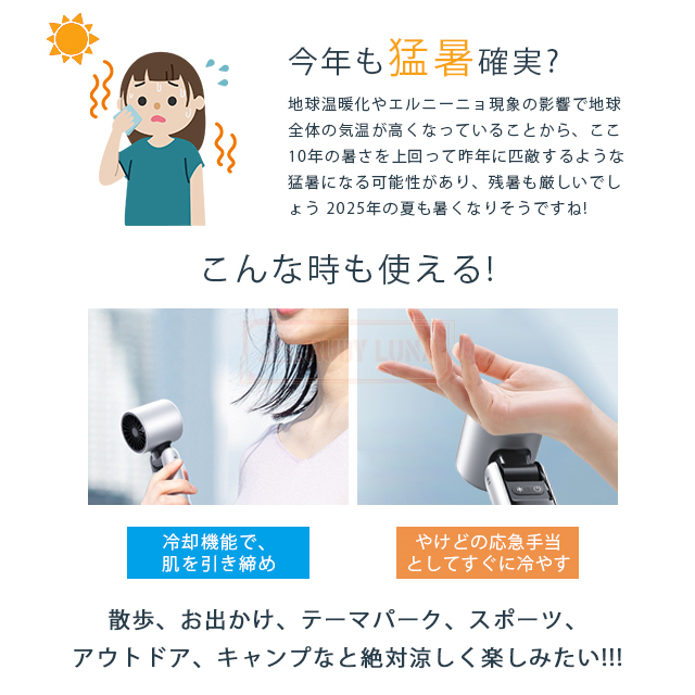 | 商品特徴 | ◆100段階無段階調節で、あなただけの涼しさを:「暑さのストレス」とはもうサヨナラ! 100段階の風力調節が可能な本製品は、微風からハリケーン級の強風まで、シーンに合わせて自由にカスタマイズ可能。 デスクワーク中の集中モードには「静音弱風」、アウトドアの炎天下では「瞬間冷却モード」で、まるでパーソナルエアコンのような快適さを実現します。 ◆業界トップクラス!超・耐久バッテリー:4000mAh 高容量バッテリー」搭載で、最大6時間連続使用可能! ◆競品を圧倒する「1.5時間急速充電」機能で、外出前の慌ただしい時間も充電ストレスゼロ。 通勤・キャンプ・オフィス——「電池切れ不安」から解放されます。 ◆驚異の冷却技術「氷冷システム」:従来のファンとは一線を画す「氷冷モード」を搭載。 内蔵冷却プレートが風にひんやり感をプラスし、体感温度を最大5℃ダウン! 猛暑日のアウトドアや、クーラーが苦手な方にも最適です。 ◆3WAYマルチアングル設計——どこでも、どう使っても 首掛けモード:ハンズフリーで登山や散歩中の汗対策に。 手持ちモード:コンパクトサイズ(60mm)でカバンにスッキリ収納。 卓上スタンドモード:デスクの熱気を一掃し、仕事効率UP! ◆プロ仕様の高機能ディスプレイ:風量・残量バッテリー・冷却モードを液晶画面で即確認! 操作はボタンひとつで直感的に——面倒な設定は一切不要です。 ◆超静音設計:図書館レベルの静かさ(騒音30%低減)で、オフィスや就寝時も安心。 ◆メイク崩れゼロ設計:優しい風量調整で、女性の悩み「メイク崩れ」を徹底防止 |