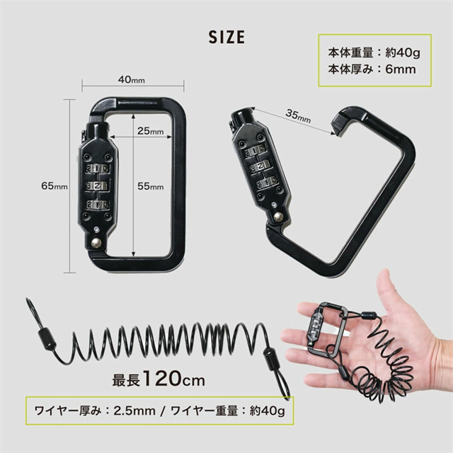 | 商品名 | ◆ダイヤルロック式カラビナ(ワイヤー付き) |