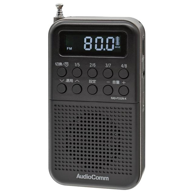 RAD-P332N-K AudioComm 2バンドポケットラジオ 充電式 ブラック 03-7052