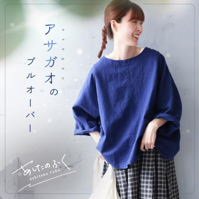 【ついに再入荷!】あしたのふく アサガオのプルオーバー レディース ブラウス 7分袖 五分袖 半端袖 ボートネック トップス