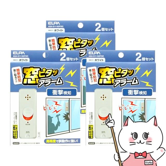 【受賞記念 最大550円オフクーポン】[3箱セット]ELPA エルパ 窓ピタッアラーム ASA-S11-N2P(W) 2個入 ×3(計6個)[朝日電器 衝撃検知式 防犯対策][送料無料] (6059944-set3)[GTT]