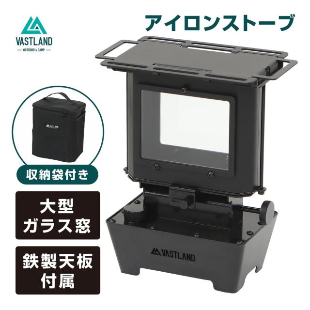 VASTLAND アイロンストーブ キャンプ ストーブ ランタンストーブ 耐熱ガラス窓 鉄製天板 収納袋 替え芯付き