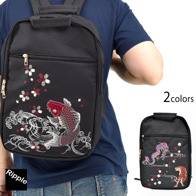 和柄刺繍リュック リップル かばん 龍 虎 竜 鯉 コイ デイパック ユニセックス