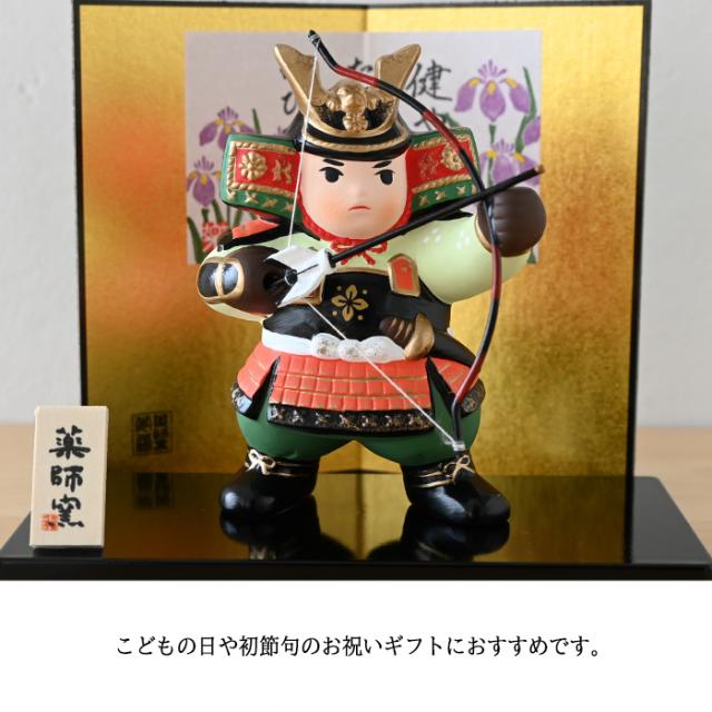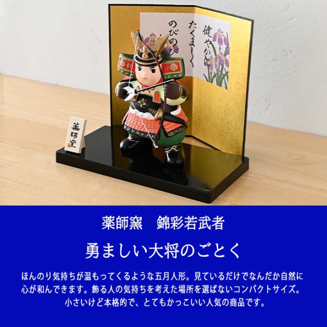 錦彩若武者(弓矢) 5743 五月人形 薬師窯 コンパクト 玄関 陶器 兜 兜飾り おしゃれ 5月人形 モダン こどもの日 飾り 置物 子供の日 端午の節句 初節句 男の子 さつき人形 可愛い カワイイ こいのぼり 鯉のぼり マンション 縁起 出産祝 誕生日 プレゼント 和遊感