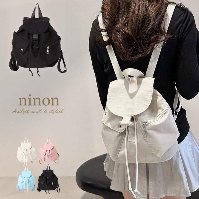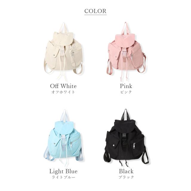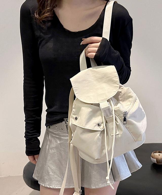 サラリとした肌触りのナイロンを使用し、アシンメトリーなポケットアレンジがおしゃれなリュック♪