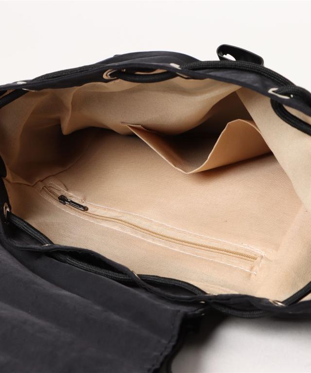 ・メイン口:差し込みバックル留フラップ&巾着式