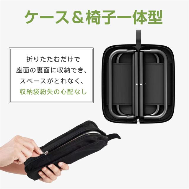 折りたたむだけで座面の裏面に収納でき、スペースがとれなく、収納袋紛失の心配なし