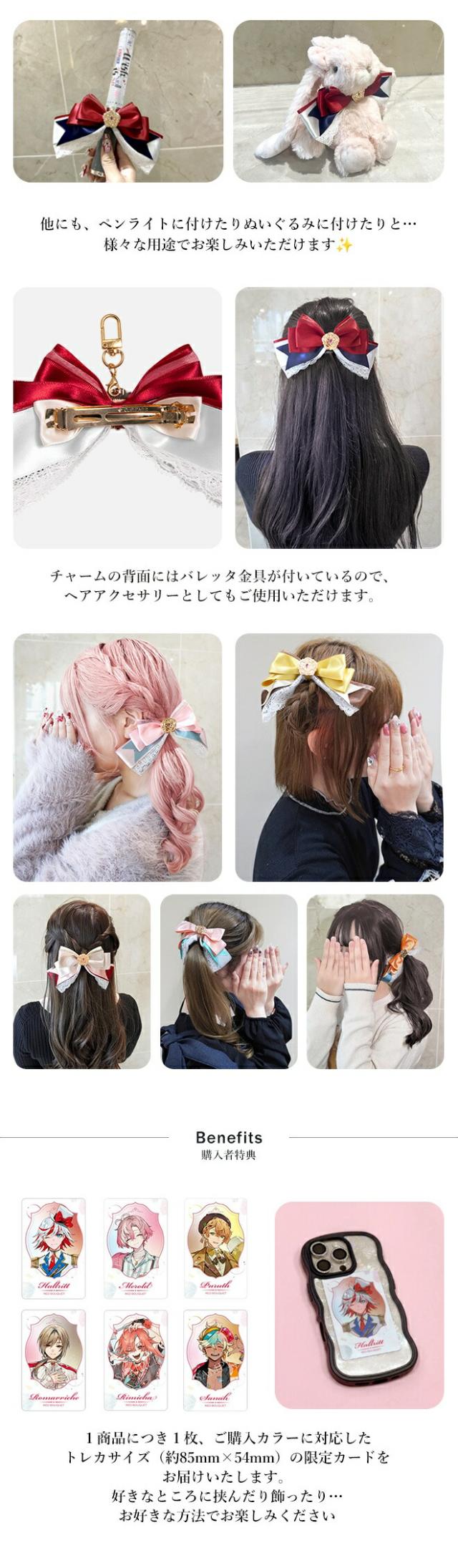 MATERIAL: リボン (サテン、ポリエステル) チャーム (亜鉛合金) バレッタ (亜鉛合金)