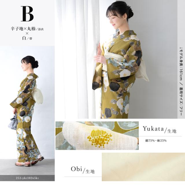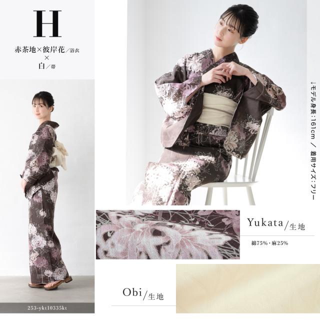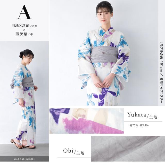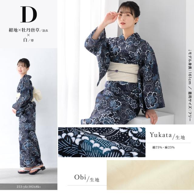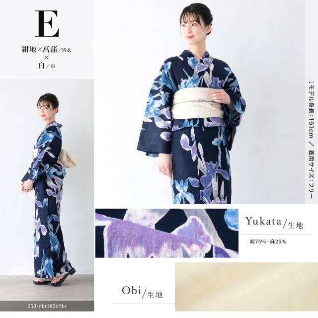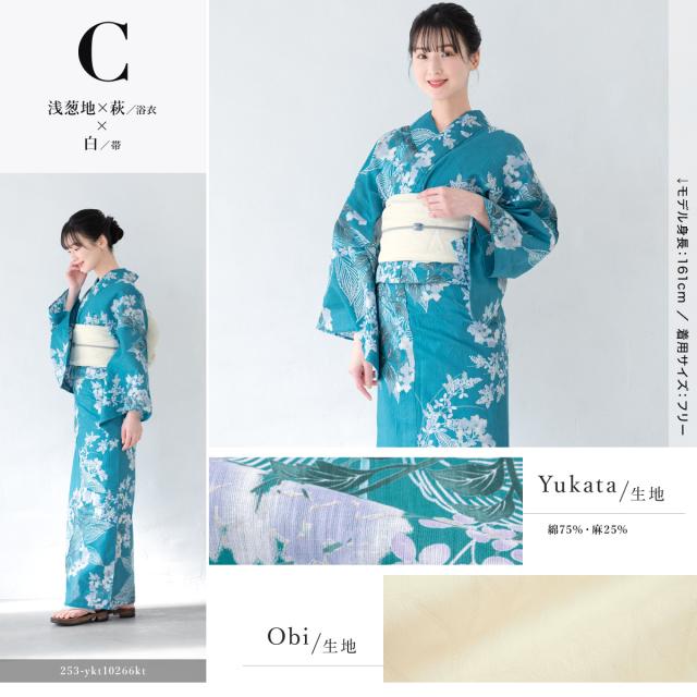 浴衣 セット レディース 浴衣セット 兵児帯 2025新作 京都室町夢 2点セット 白 青 紺 黒 灰色 赤茶 黄 紫 椿 牡丹 彼岸花 花柄 おしゃれ 知多木綿 綿麻 フリー 送料無料