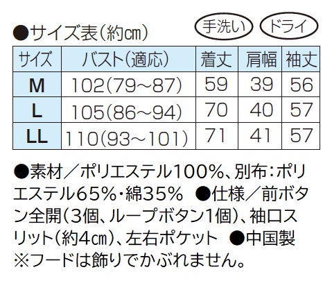 ●仕様/前ボタン全開(3個、ループボタン1個)、袖口スリット(約4?)、左右ポケット