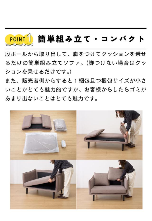 脚を取り外してロースタイルでも使えるコンパクトソファ。