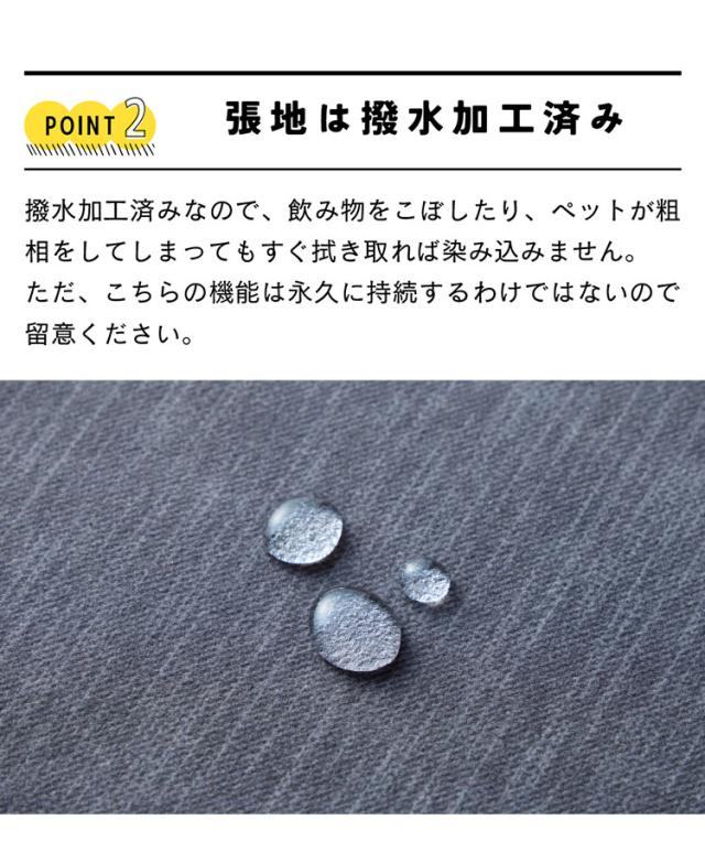 また撥水加工も施していますので、飲み物などをうっかりこぼしてしまっても染み込む前にサッと拭き取ってお手入れも簡単です。