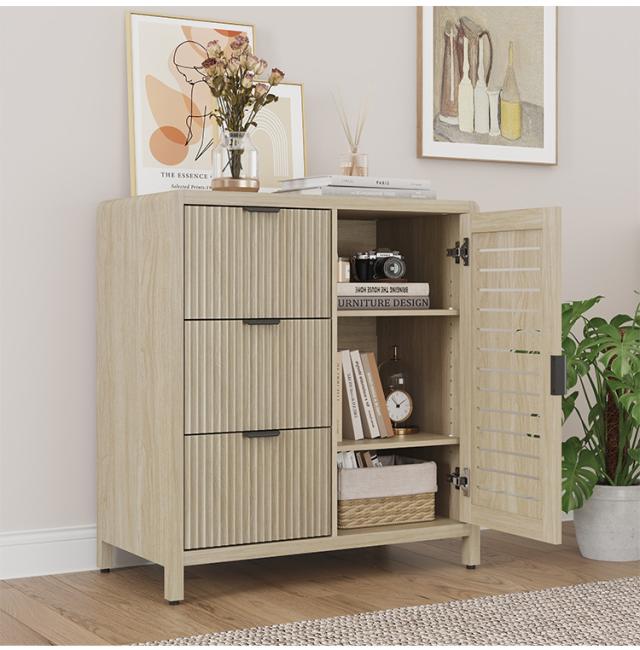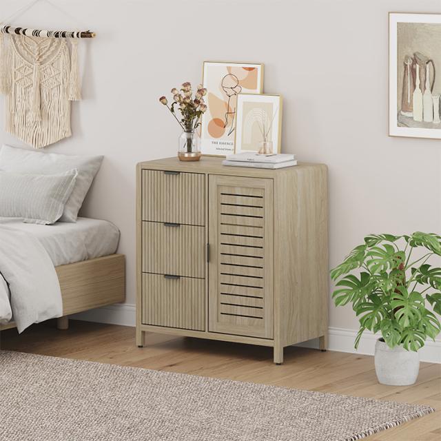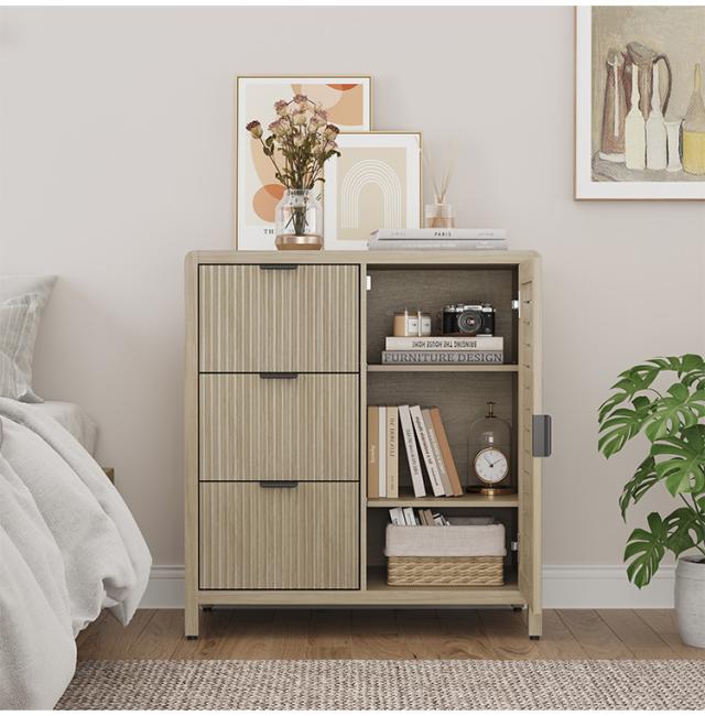 リビングに置いてサイドボードとして利用したり、キッチンに置いてトースターやケトルなどを置く台やベッド脇の収納など、様々なシーンで活躍します。