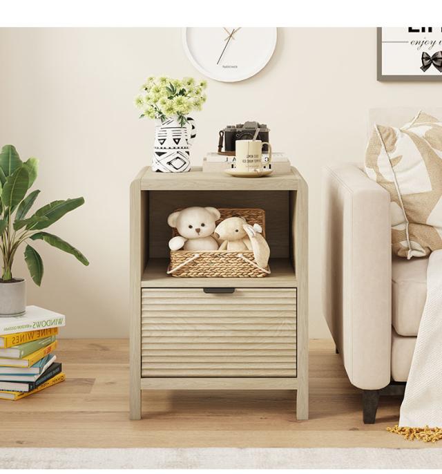 サイドテーブルやナイトテーブルとしてもお使いいただけます。また引き出し付きなので、よく使うものと閉まっておくものなど、便利に使えます。