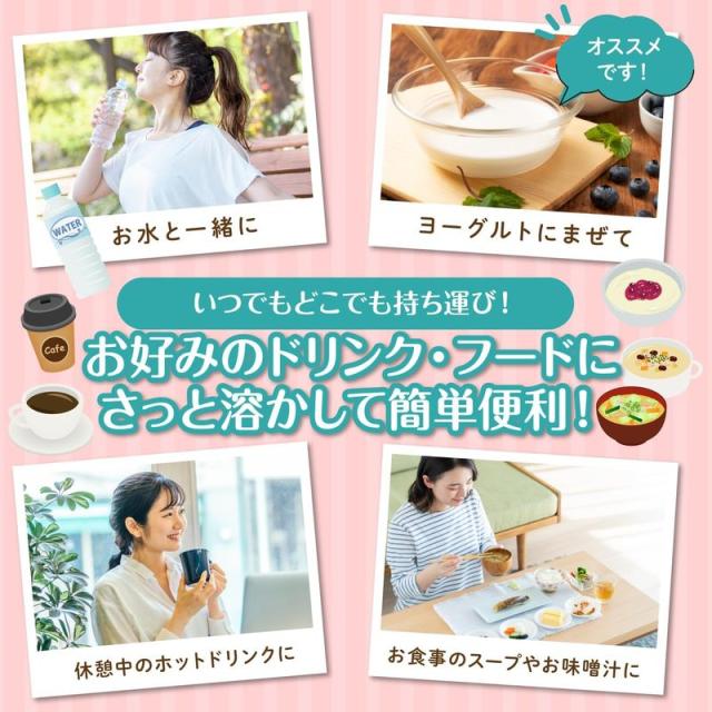 一日1本(5.2g)を目安に、水またはお湯と共に、もしくはお好みのお飲み物やお料理に溶かしてお召し上がりください。