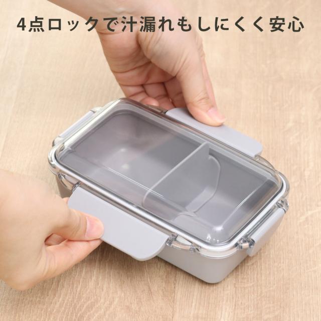 中身のふんわり感を保ちつつも、4か所でしっかりと閉められる4点ロック式の蓋もうれしいポイントです。持ち運ぶ際に汁漏れしにくく、安心してお使いいただけます。