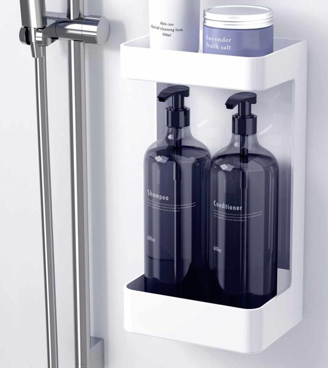 《 LH18394 LH1525 バスグッズ バス用品 簡単設置 取り付け簡単 壁面収納 2段タイプ シャンプーラック シェルフ シャンプー コンディショナー リンス 洗顔フォーム 洗面 小物収納 小物置き ぬめり 防止 乾燥 乾かす かび カビ予防 シンプル 白 おしゃれ オシャレ 便利 》