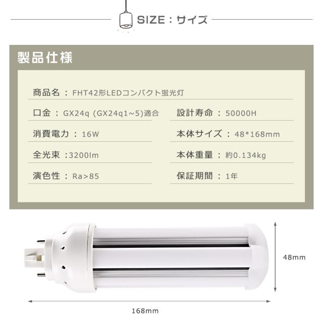 コンパクト型蛍光ランプ LED ツイン蛍光灯 LED FHT42EX-L FHT42EX-W FHT42EX-N FHT42EX-L LED FHT42EX-D LED 蛍光灯 42W 代替用LED蛍光灯 LEDランプ 3波長形LED照明 16W 全光束3200lm GX24Q通用口金 LED電球 LED化 家庭照明 FHT42W形代替 節電 軽量 エコ照明 玄関照明