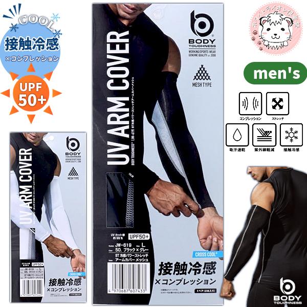 冷感 パワーストレッチ メンズ アームカバー メッシュ JW-619 コンプレッション BTパワーストレッチ 吸汗速乾 紫外線軽減 接触冷感 UVカット 紫外線対策