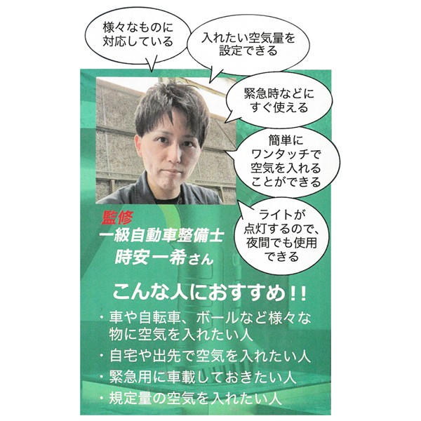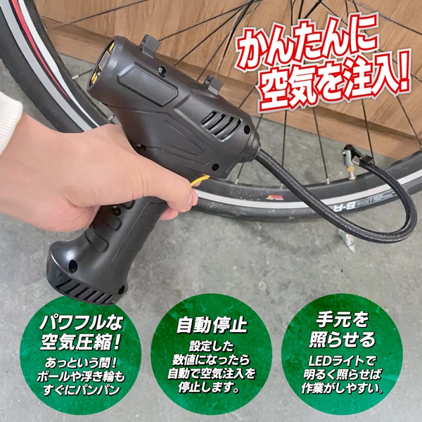 片手で、ポータブルで使える「電動空気入れ」!