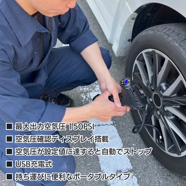 | LED搭載 USB充電式 エアーコンプレッサー |