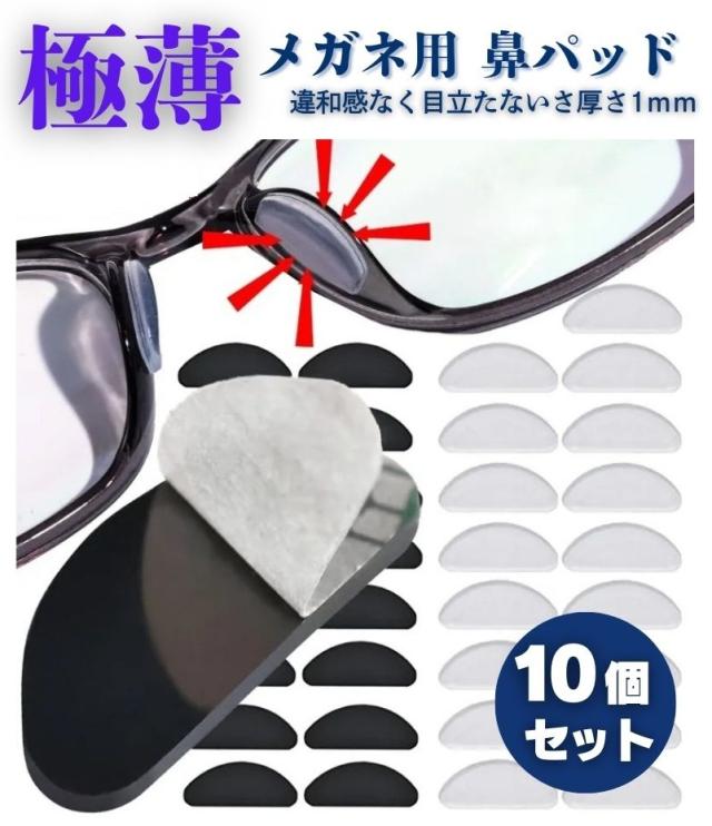 10個セット 厚さ1mm 極薄 メガネ 鼻パッド 滑り止め シリコン 眼鏡 ズレ防止 サングラス めがね 両面テープ セルシール 跡がつかない