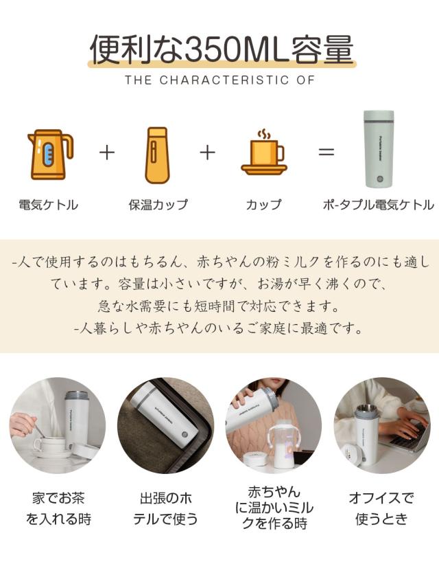 ポータブル電気ケトル 350ml おしゃれ 電気ケトル 電気ボトル 商品詳細 ★商品名:ポータブル電気ケトル