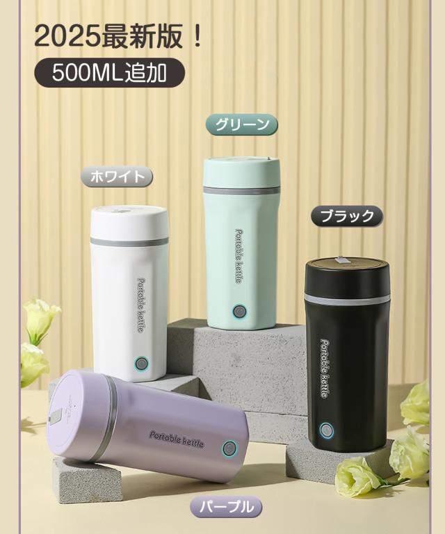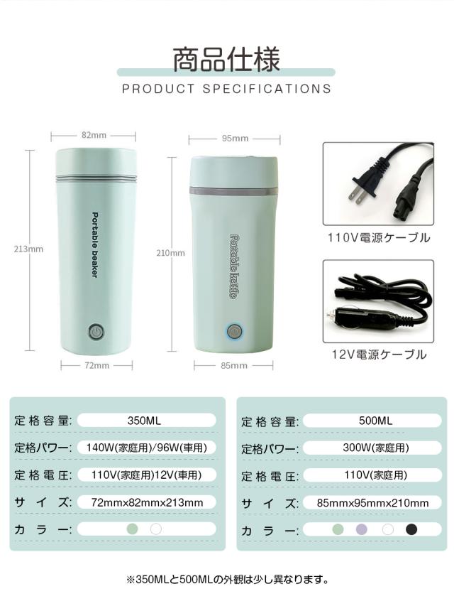 電気カップ 電気ケトル 電気水筒 ボトル 速沸 おしゃれ500ML350ML 30℃〜100℃ 軽量 ミニ電気ボトル ボトル 魔法瓶ポット 12V車用 携帯 ボトル オフィス 旅行 ワンプッシュ オープン 持ち運び 自動電源OFF 5分沸騰 PSE認証済 授乳 コーヒー お茶入れ お湯 保温 父の日 ギフト