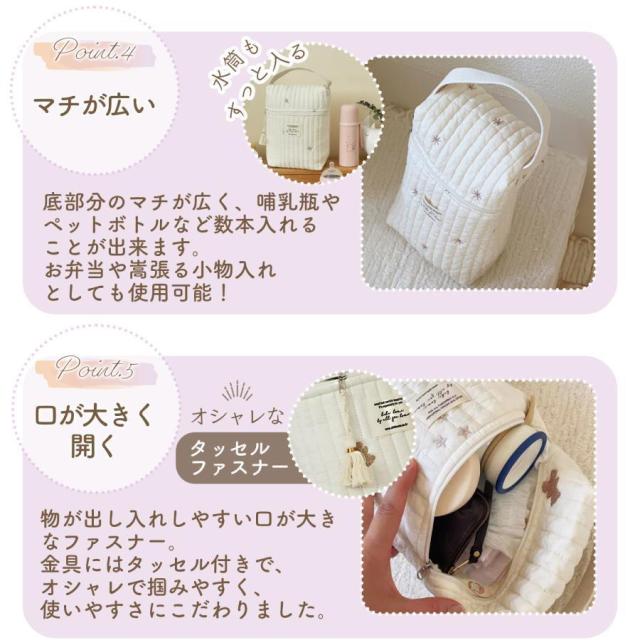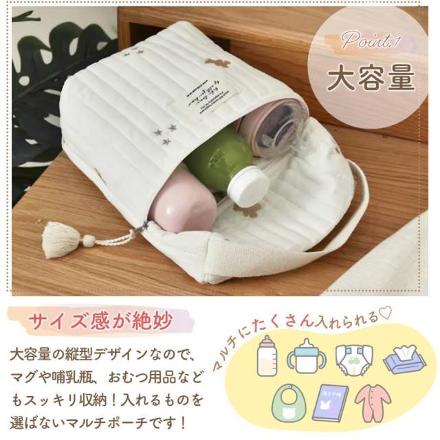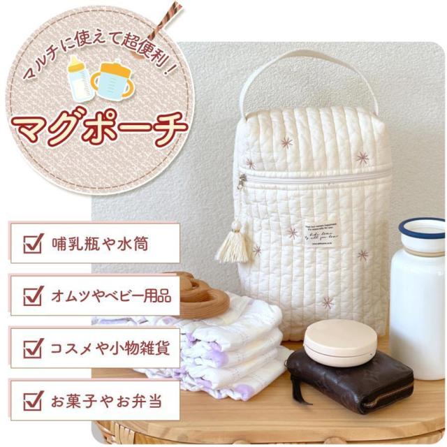 哺乳瓶やお水、ミルク、水筒などがスッポリ収納できるマルチポーチです!