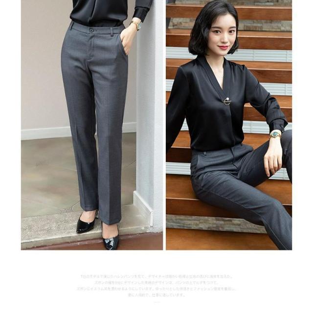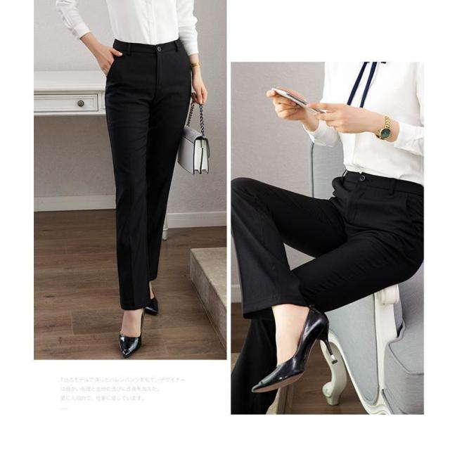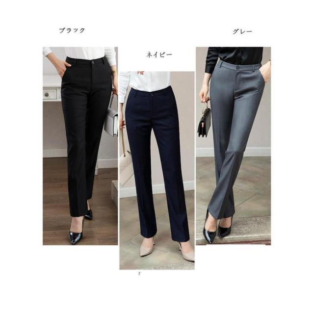 スラックス ビジネス フォーマル パンツ レディース スーツパンツ ストレートパンツ 美脚 オフィス パンツ ストレート ロング 黒