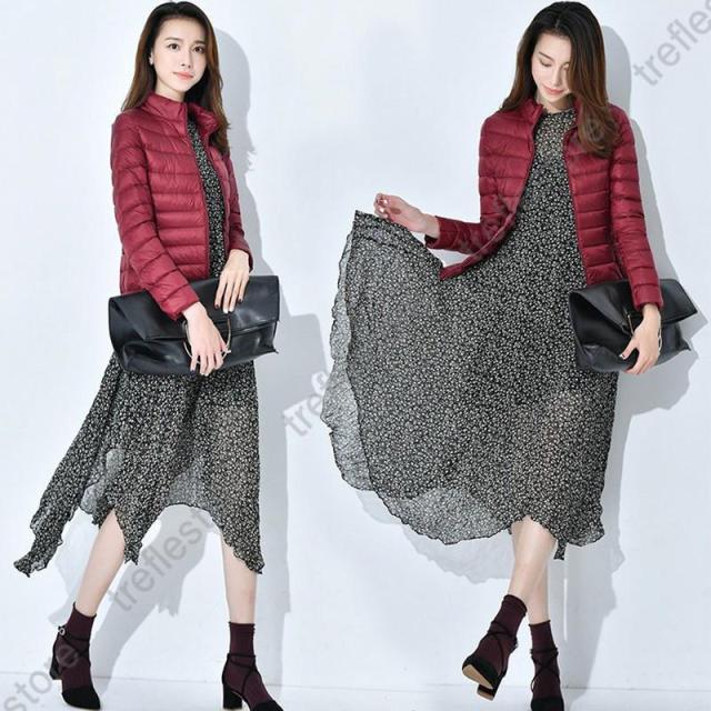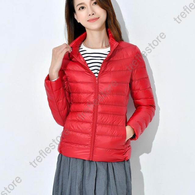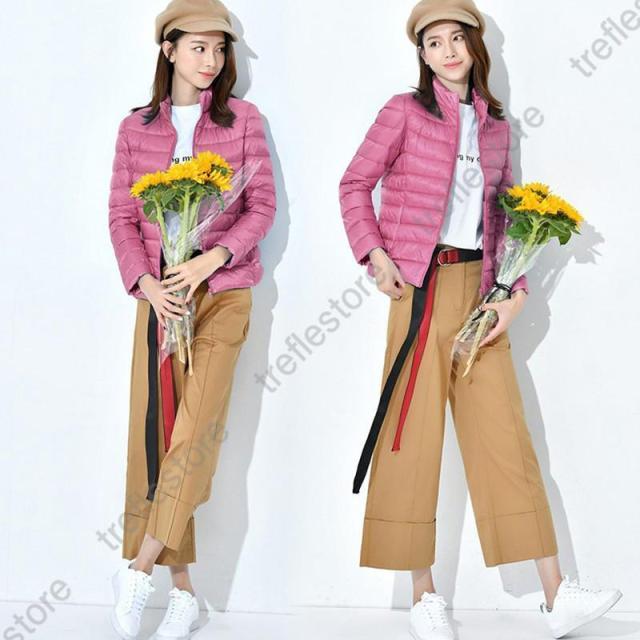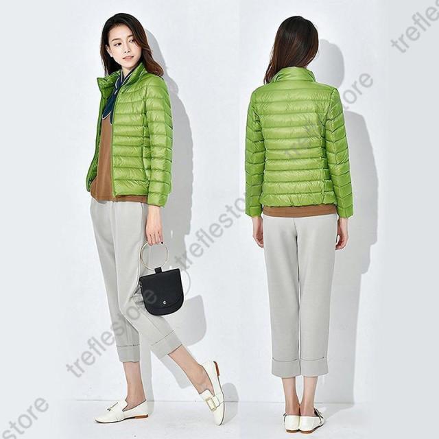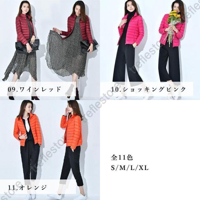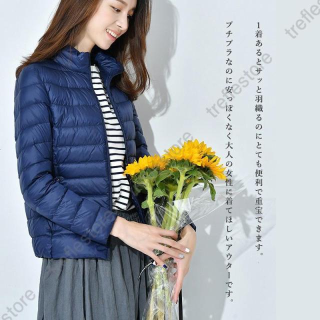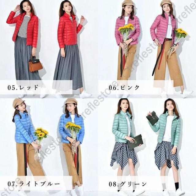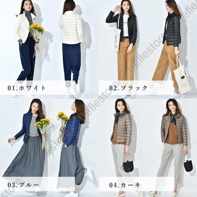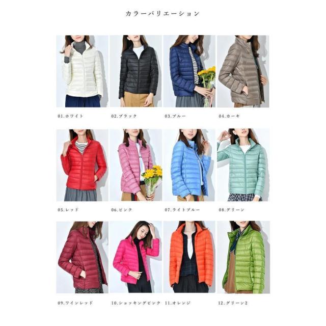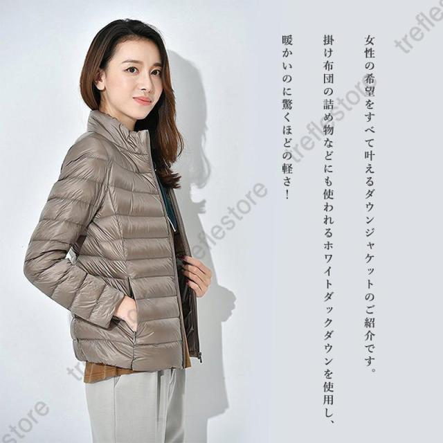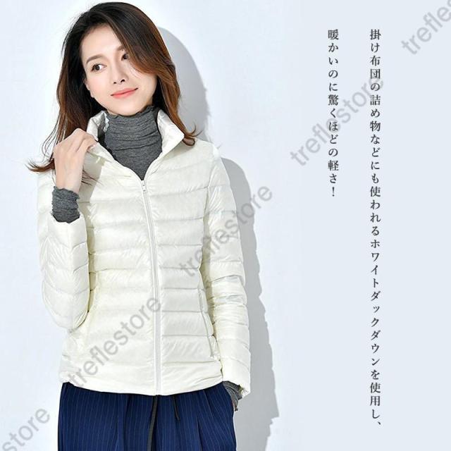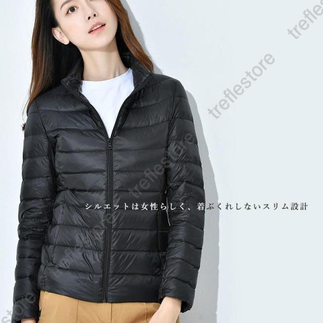 収納袋付 スタンドカラー フードなし スリム フィット ファスナー コンパクト 旅行 ダウンジャケット レディース アウター ジャンパー インナージャケット 軽アウター 上着 防寒 秋 冬 ホワイトダックダウン ショート丈 大人 キレイめ カジュアル 軽いダウンジャケット