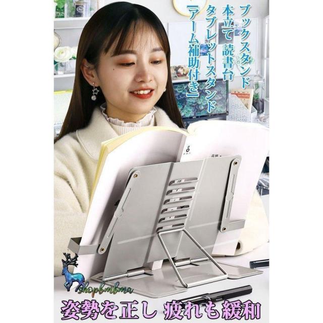 [アーム補助付き]読書ブックスタンド 本立て 読書台 スマホスタンド タブレットスタンド 読書スタンド 書見台 bookstand 角度調節