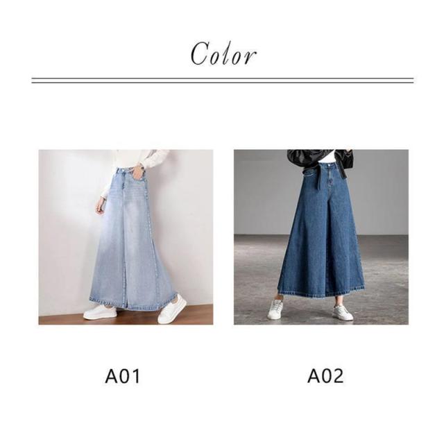 ワイドパンツ レディース ボトムス デニムワイドパンツ デニムパンツ 体型カバー ゆったり 無地 ロングパンツ スカート ジーンズ 快適 着痩せ