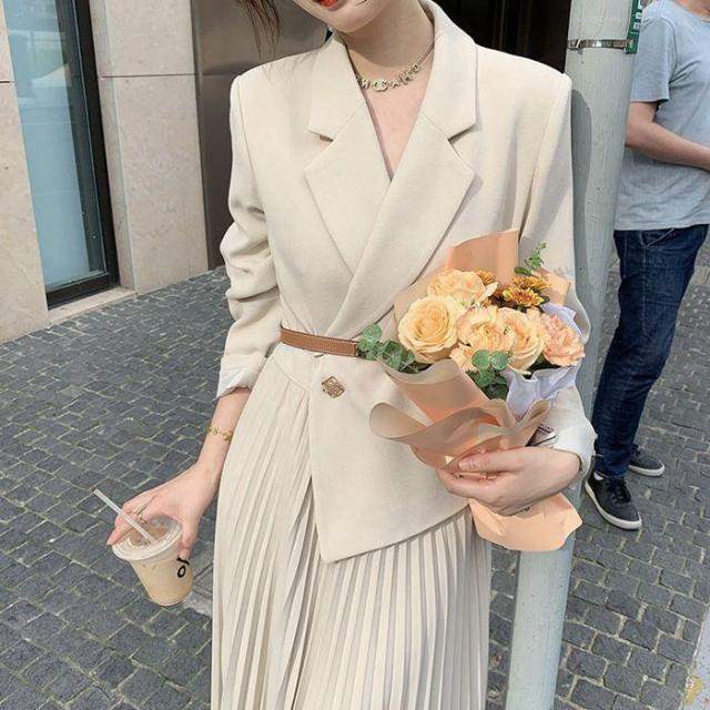 入学式 ママスーツ ワンピース セレモニースーツ 卒業式 スーツ おしゃれ レディース フォーマルスーツ 母 七五三 卒園式 入園式 Vネック プリーツ フェイクレイヤード エレガント 長袖 春 秋 着痩せ 結婚式 通勤 お宮参り 30代 40代 50代