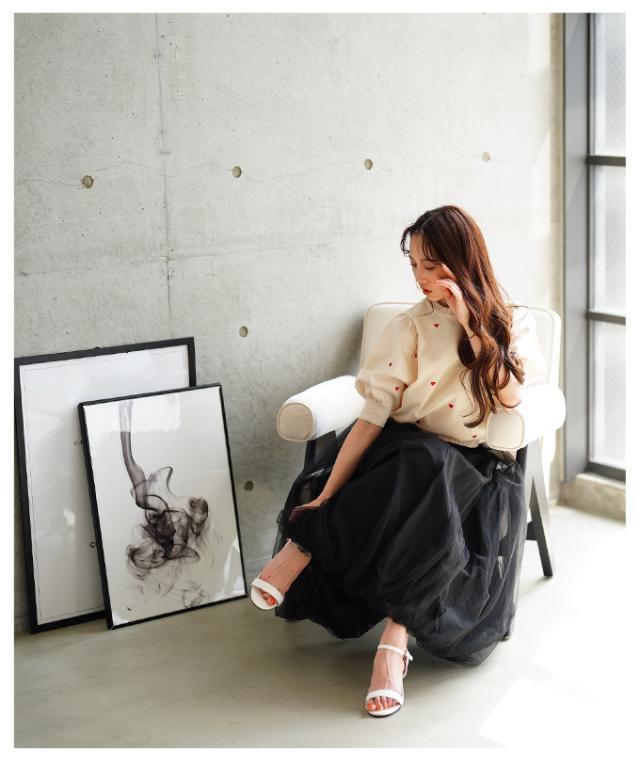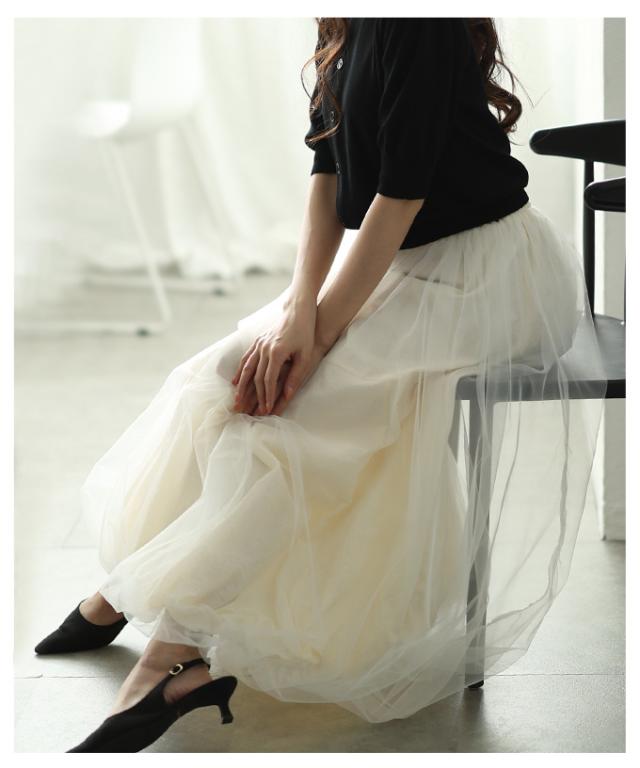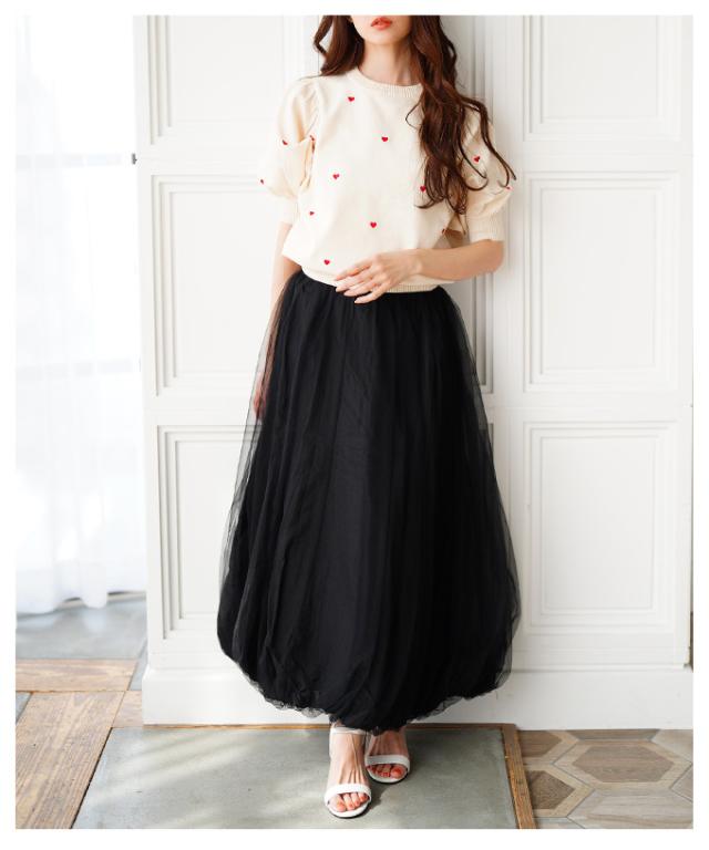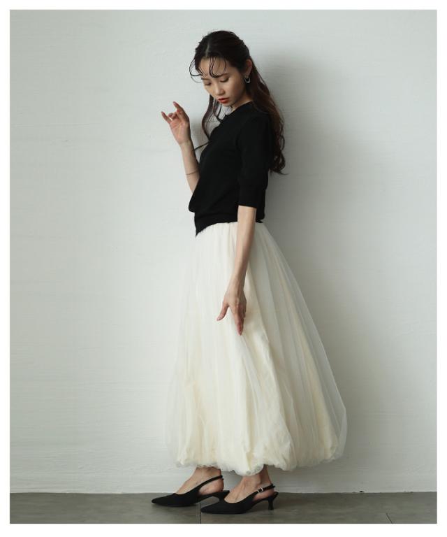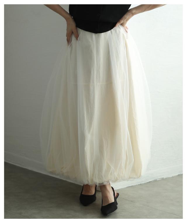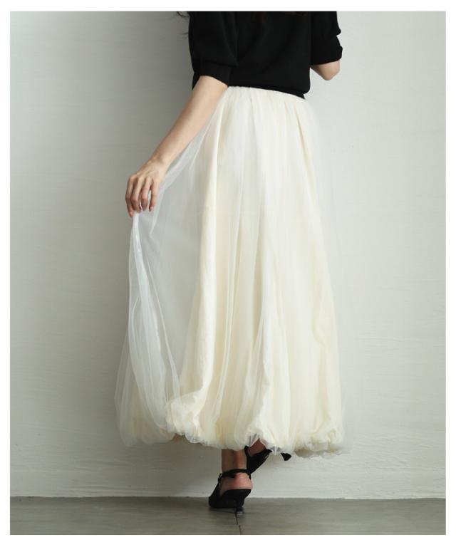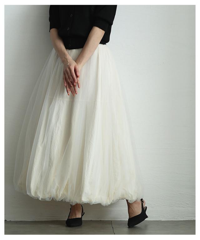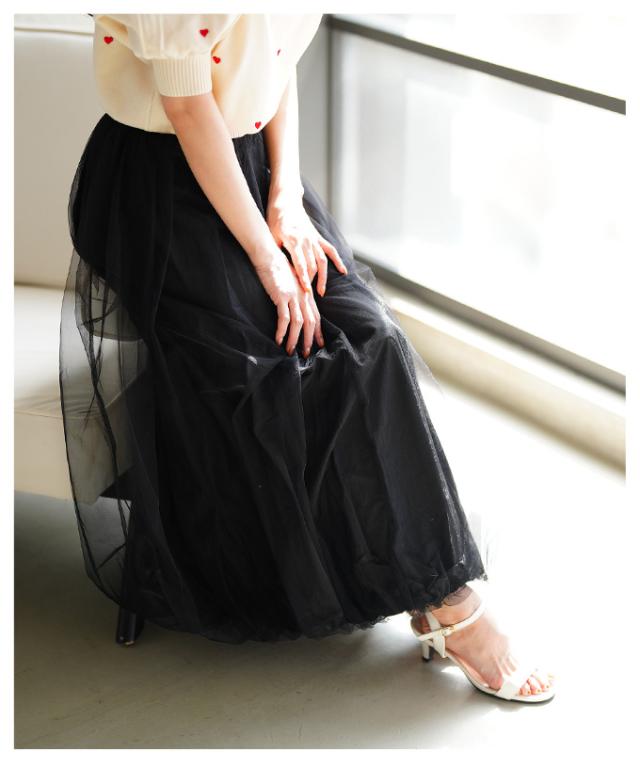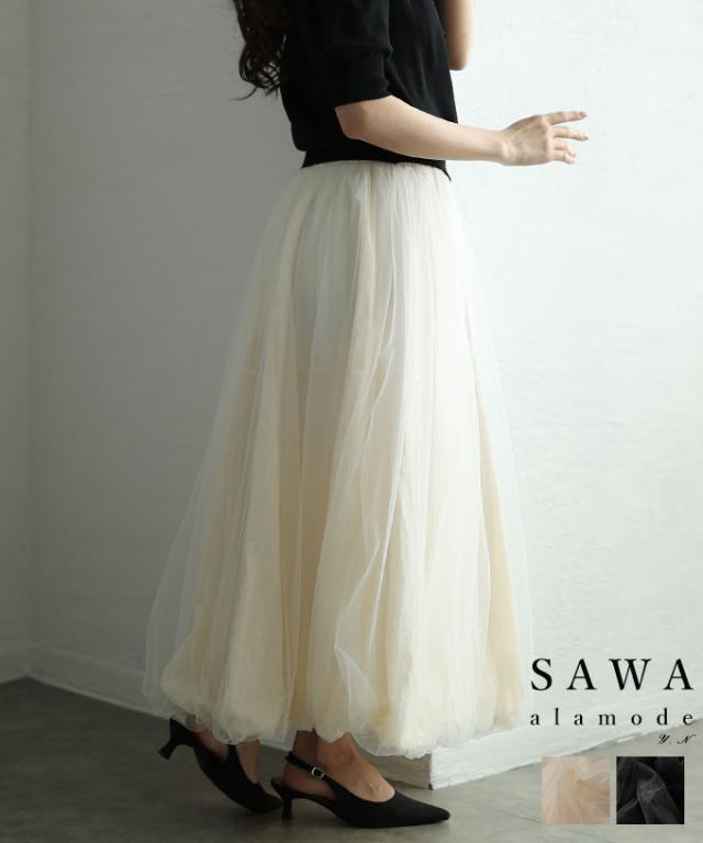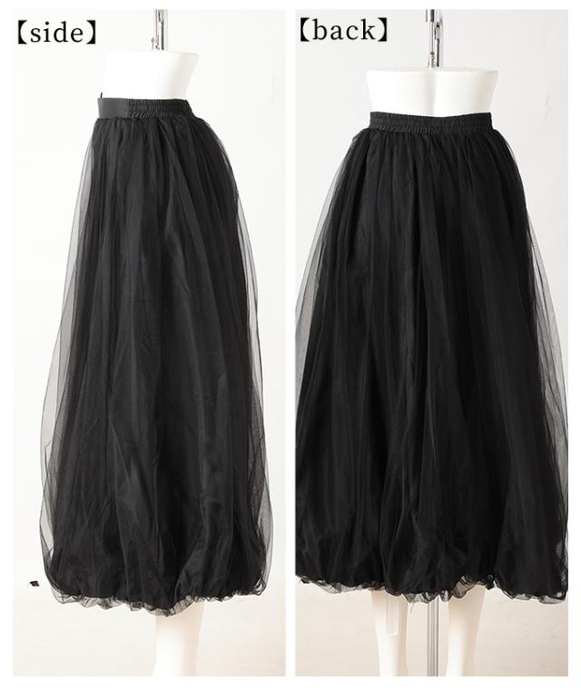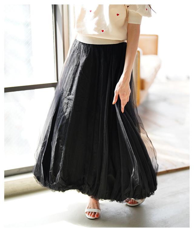 春新作 美しいチュールベールに包まれたバルーンロングスカート レディース ファッション ボトムス スカート ブラック 黒 ロング 大人可愛い 40代 レディースファッション 50代女性 ファッション 60代 ミセスファッション サワアラモード sawaalamode otona almam-84082