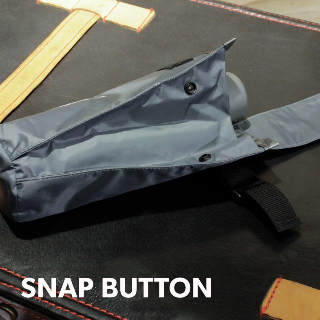 スナップボタンを外すことでケースが大きく開き、傘本体を収納しやすくなっています。