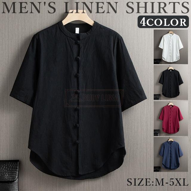 最安挑戦 冬新作 送料無料 新作 リネンシャツ メンズ 半袖 トップス 無地 前開きシャツ 立ち襟 ワイシャツ 春夏 シンプル 薄手 涼しい 綿麻 チャイナボタン 半袖シャツ 大きいサイズ カジュアルシャツ 中国風 綿麻シャツ 夏祭り 普段着
