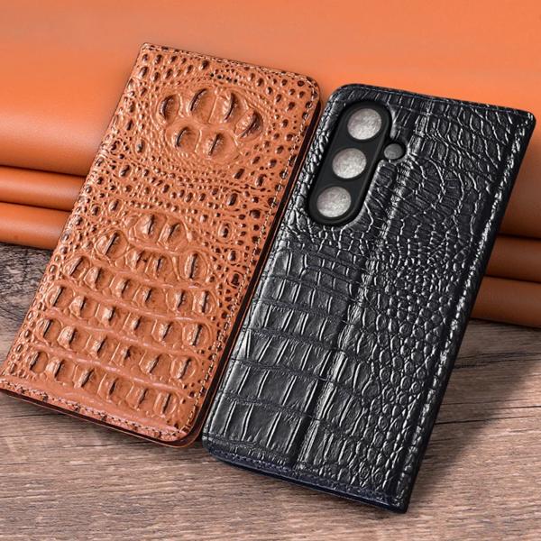 フラップ付き本革ウォレットケース,サムスンギャラクシーa56 a36 a26 a16 5g,本革磁気カバー,3Dクロコダイルカード,ウォレットケース