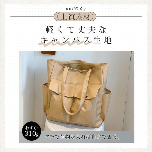 【軽量撥水&自立】軽くて丈夫なキャンバス生地でわずか310g。雨の日にも気軽に撥水加工もある。マチで荷物が入れば自立できる。