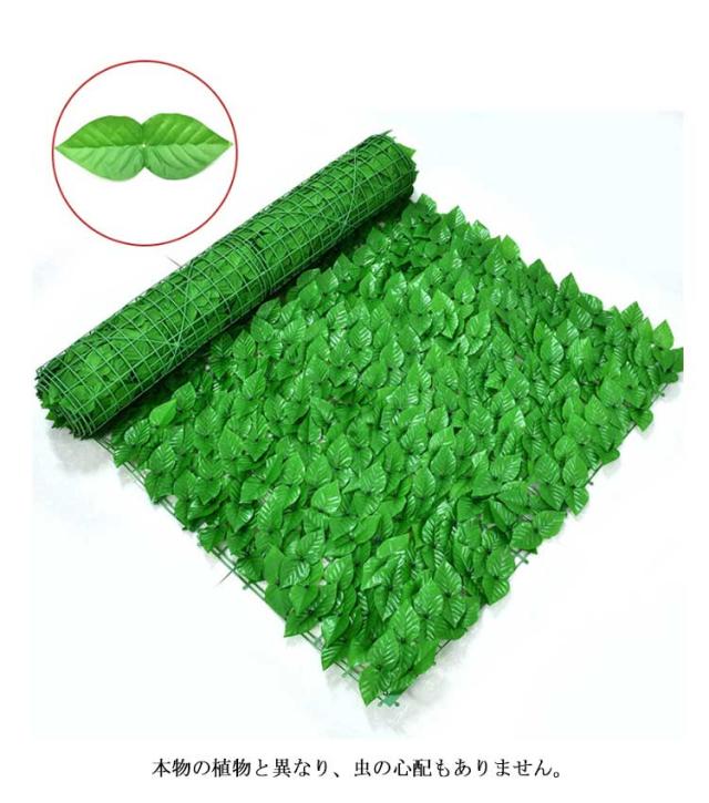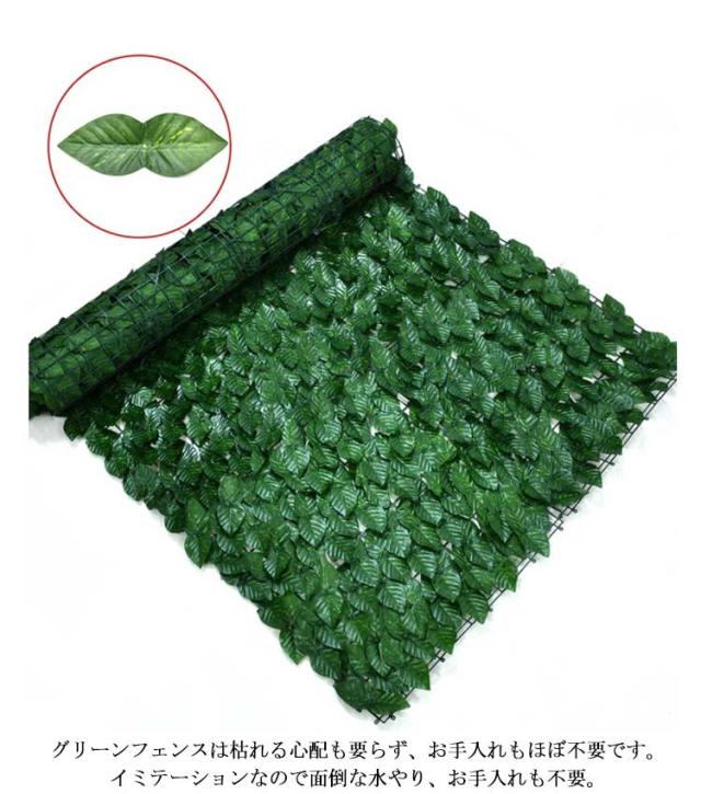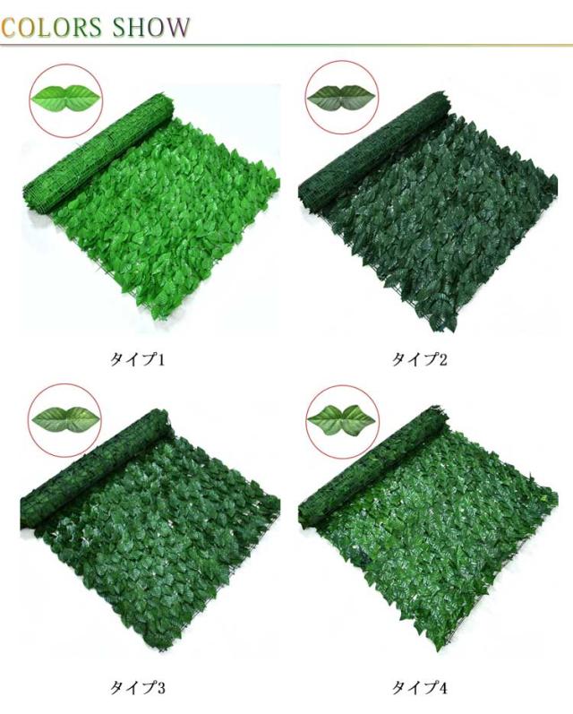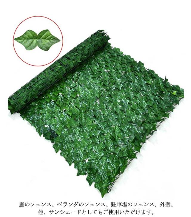| お洒落でECOな目隠しになる~ 目隠しになるグリーンフェンスです。 本物の植物と異なり、虫の心配もありません。 グリーンフェンスは枯れる心配も要らず、お手入れもほぼ不要です。イミテーションなので面倒な水やり、お手入れも不要。 通気性抜群で爽やかな風が通り抜けます。 庭のフェンス、ベランダのフェンス、駐車場のフェンス、外壁、他、サンシェードとしてもご使用いただけます。 | |
