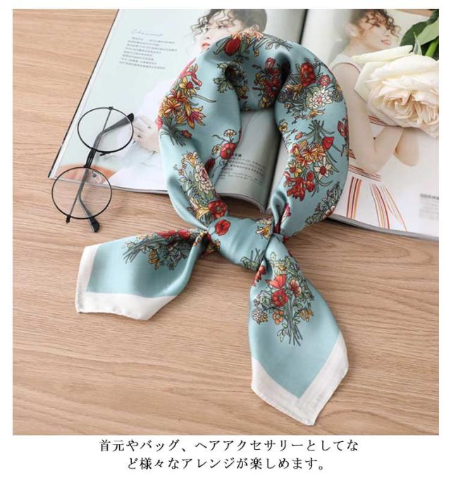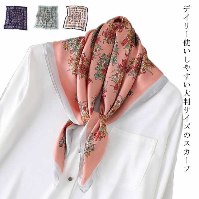 | デイリー使いしやすい大判サイズのスカーフ 光沢感のある柔らかな生地で、高見えするスカーフ。 普段のコーデにプラスするだけで上品でこなれた印象に。 首元やバッグ、ヘアアクセサリーとしてなど様々なアレンジが楽しめます。 お弁当のラッピングや友達へのお菓子等のギフトラッピングなどコスパがいいので、そのままスカーフごと、プレゼントすると喜ばれます。何かと使えるアイテムなのでおすすめです。 ◇コーディネート◇ シンプルコーデとの相性抜群な、巻くだけでこなれ感たっぷりなスタイルを演出できるアイテム。 ヘアアクセサリーやバッグアクセサリーとしてなど幅広いアイテムとのアレンジが楽しめます。 | |