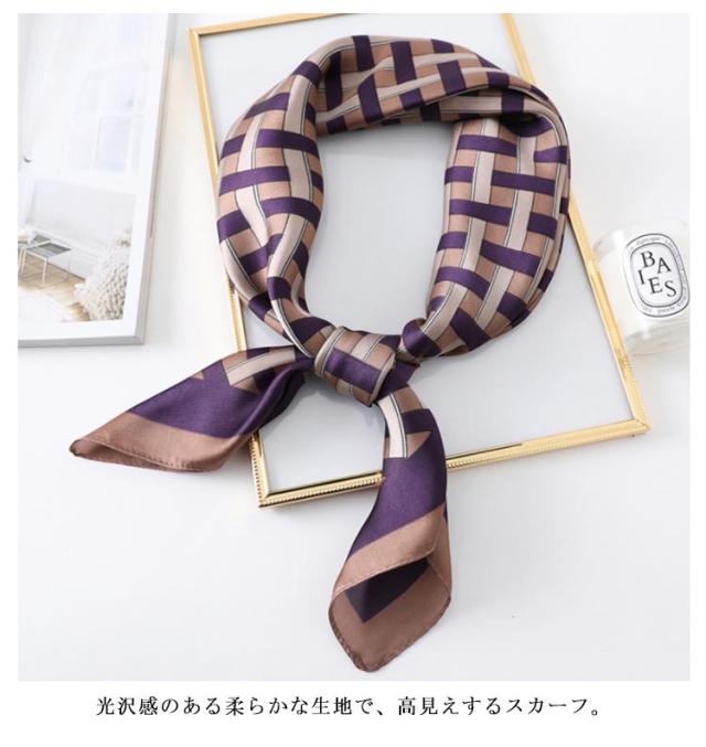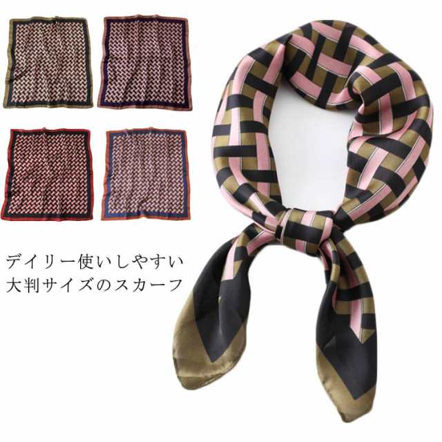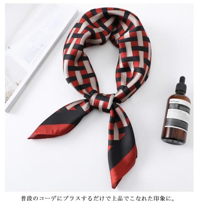 | デイリー使いしやすい大判サイズのスカーフ 光沢感のある柔らかな生地で、高見えするスカーフ。 普段のコーデにプラスするだけで上品でこなれた印象に。 首元やバッグ、ヘアアクセサリーとしてなど様々なアレンジが楽しめます。 お弁当のラッピングや友達へのお菓子等のギフトラッピングなどコスパがいいので、そのままスカーフごと、プレゼントすると喜ばれます。何かと使えるアイテムなのでおすすめです。 ◇コーディネート◇ シンプルコーデとの相性抜群な、巻くだけでこなれ感たっぷりなスタイルを演出できるアイテム。 ヘアアクセサリーやバッグアクセサリーとしてなど幅広いアイテムとのアレンジが楽しめます。 | |